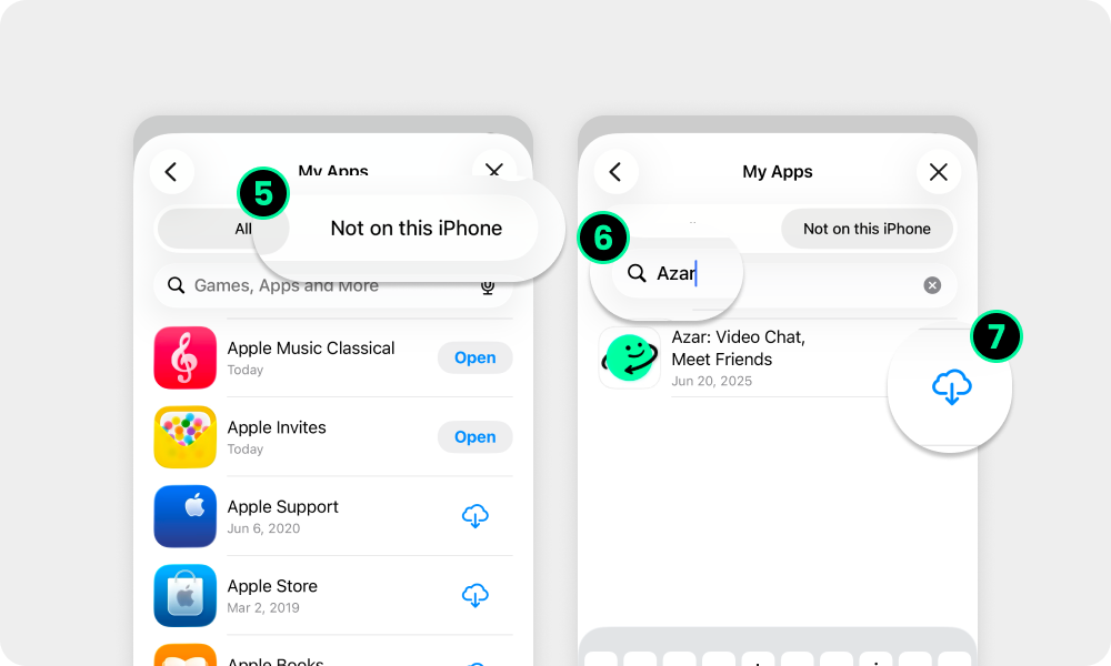 If you’ve previously downloaded Azar on your iOS device, you can reinstall it by following these steps: